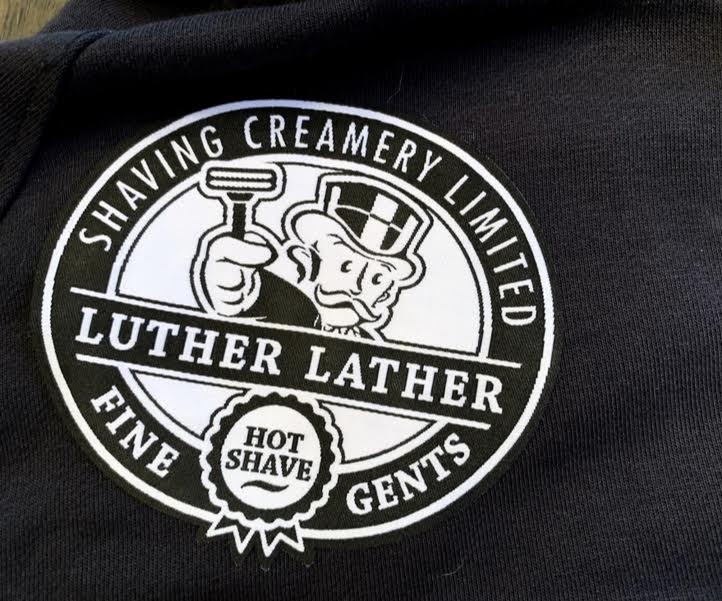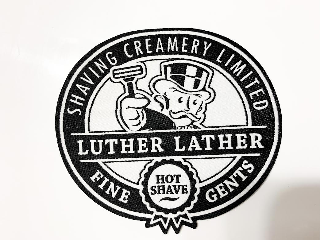 Luther Lather Limited edition " HOT SHAVES + FINE GENTS " iron on woven patch.